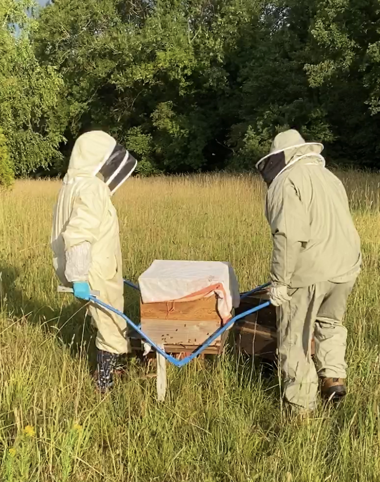 3. The hive is now positioned alongside the pre-prepared equipment.