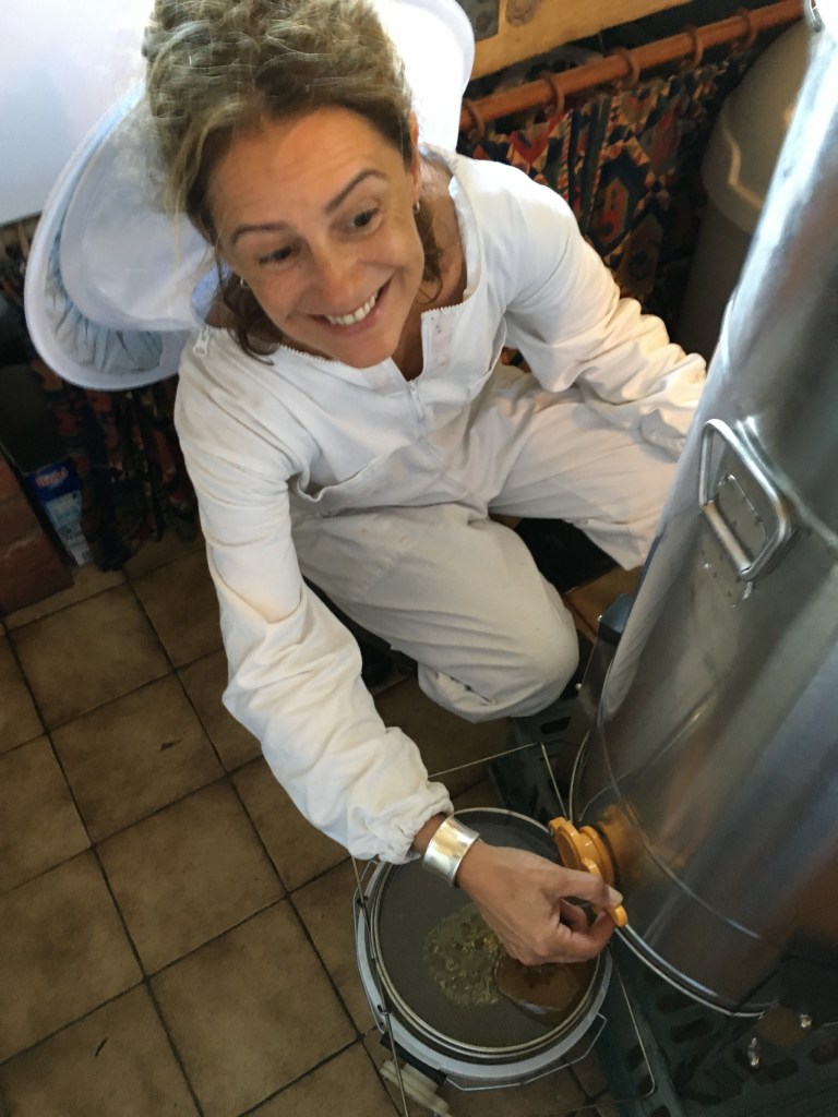 Like other members, we were harvesting honey in the middle of August. We found some crystallisation on the combs but the honey that was easier to spin out, was darker and stronger in flavour than in recent years. In the end, we managed a respectable harvest and we were pleased with the honey’s floral flavour.