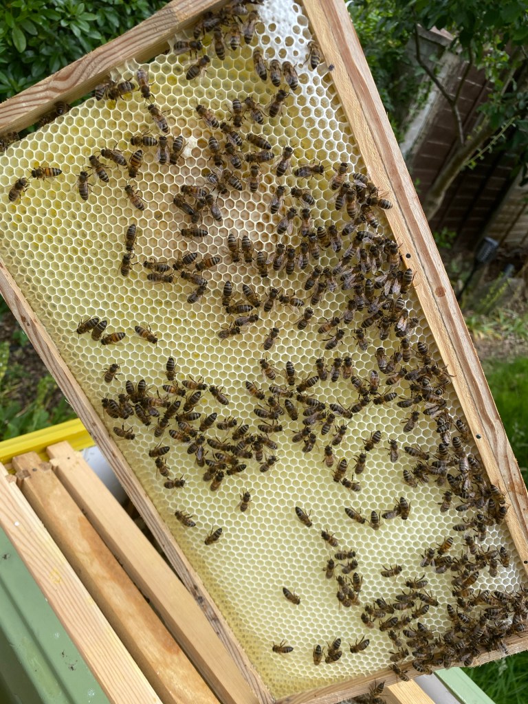 Four days later the worst happened, I had booked a holiday and I had to leave them. Off to Devon I went and had an amazing time and on the final day I was pleased we decided to leave early; it meant I could look inside the nuc when I returned. I would say that like all beekeepers, the scenarios were running rampant in my head.