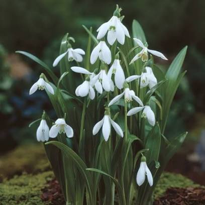 Snowdrop (galanthus) Galanthus is a small genus of approximately 20 species of bulbous perennial herbaceous plants in the family Amaryllidaceae. The plants have two linear leaves and a single small white drooping bell-shaped flower with six petal-like tepals arranged in two circles (whorls). The smaller inner petals have green markings. Snowdrops are out as early as January.