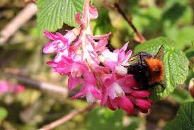 (ribes sanguinum) is a flowering currant with a very strong scent. It is an excellent bee plant. Take a close look at each cluster of a dozen or more small, nectar-rich flowers which hang like bunches of grapes from the stems. Now visit again when the spring sun is shining and listen to the buzz! This amazing plant is in flower just when that precious pollinator the bumblebees starts to emerge. To find such a rich supply of nectar in one place is exactly what early bees need. It is sometimes said that when this flowering currant appears the beekeeping season begins!
