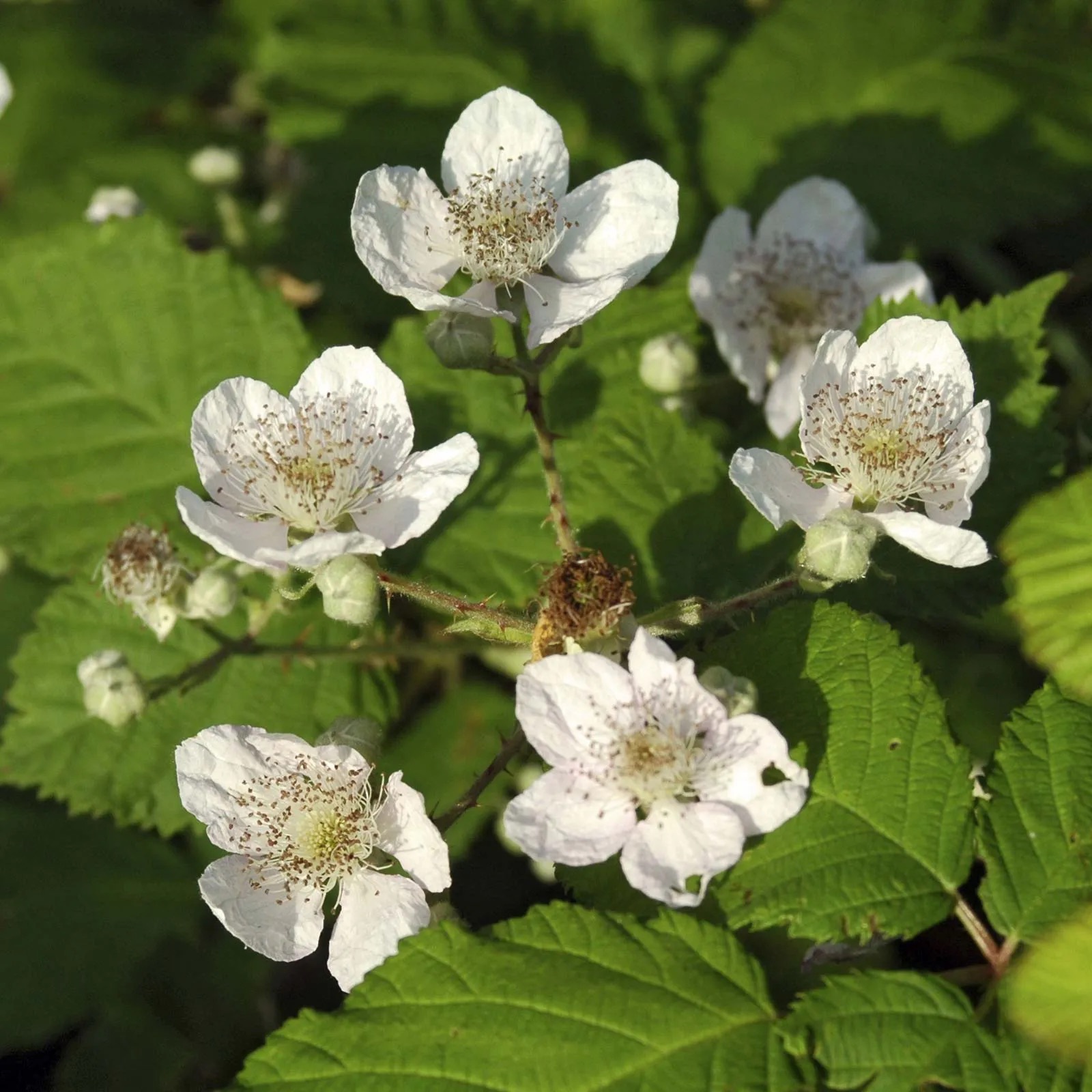 Blackberries (rubus fruticosa) are very vigorous, thorny scramblers with pink or white flowers in summer followed by black berries. The dark green leaves with three leaflets can provide good autumn tints. It is a valuable plant for wildlife, providing food and shelter and excellent forage for bees.