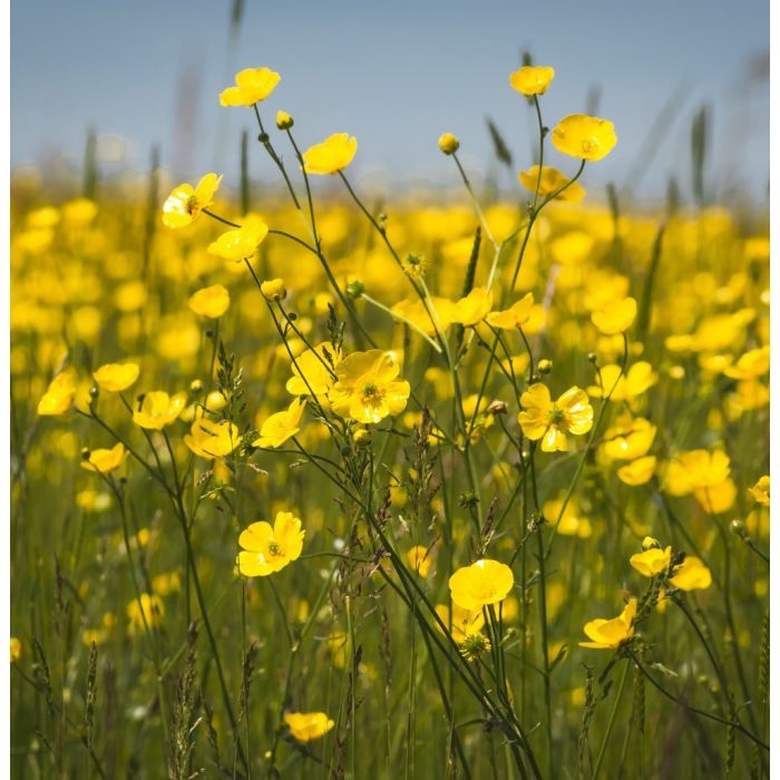 Buttercups (ranunculus acris) or Meadow buttercup bears pretty, yellow flowers from April to October. Our tallest common buttercup, it can reach a height of 90cm. The petals have mirror flat cells that bounce back light. These reflect UV light which helps to attract bees and looks vibrantly yellow from any angle. Buttercups are nectar-producing and are visited by a vast array of different insect species, predominantly bees, flies, wasps and beetles, but many others as well.