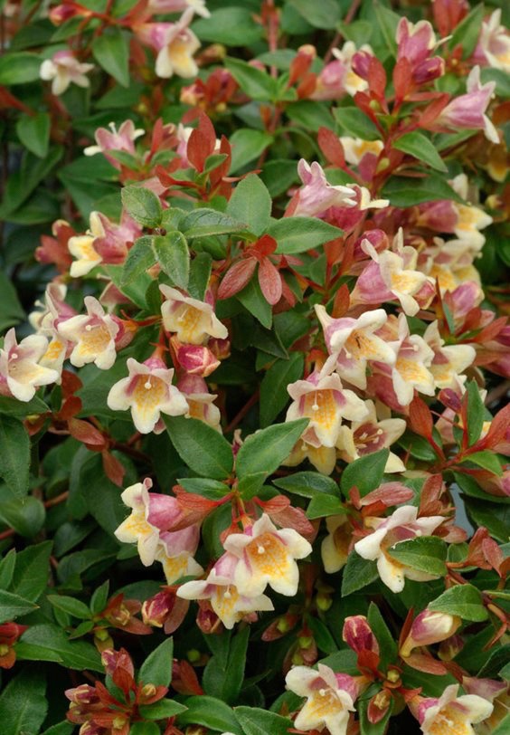 Abelia does best in a sunny, sheltered position in fertile, well-drained soil. This shrub won’t be happy in cold or windy positions or in soils that don’t drain well. You can take cuttings of soft new growth in early summer and root them easily to produce new plants.