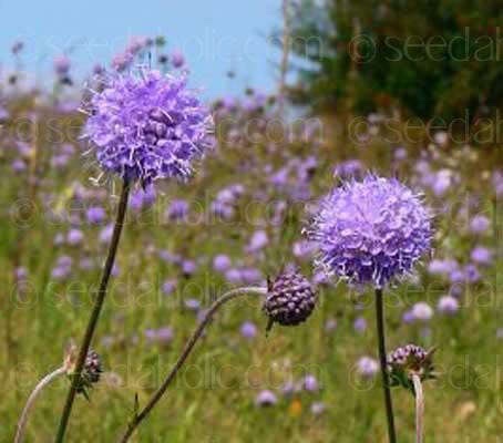 Devil’s-bit scabious (succisa pratensis). The pincushion-like, lilac-blue flower heads of Devil’s-bit scabious attract a wide variety of butterflies and bees. Look for this pretty plant in damp meadows and marshes, and on riverbanks. It can grow up to up to 75cm and is common throughout the UK between July to October.