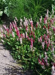 Persicaria affinis is a creeping, mat-forming perennial, with narrow green leaves and lollipop spikes of pale pink flowers. Semi-evergreen, it makes a fine choice for using as ground cover in a mixed herbaceous border and its blooms are popular with pollinators.