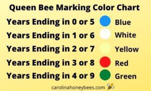 Queens emerging in 2023 will be marked Red There are good reasons for marking your queen. Not only does it make it easier to spot her in a busy colony and allows you to keep track of her age, but it helps you determine that the queen you’re looking at is the same queen you saw last time! Your queen may have swarmed or been superseded and marking allows you to determine this.