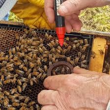 The identifying mark should be small, so that it does not cover any other part of the queen. Usually, queens are marked before being introduced but they can be marked at any time. Paint should be given ample time to dry before the queen is released into the colony.