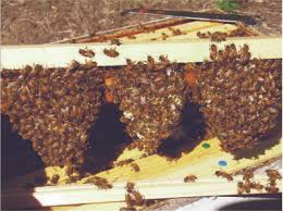 Four colonies (including one of the ‘small ones’ produced five supers of honey each. The breeder colonies each had a full brood box of honey for the winter and yielded two supers of honey each. One colony produced three supers of honey, two colonies produced one super of honey and four colonies produced no honey at all but two of these provided frames for nucs. All the colonies on single brood had a super of honey under the brood box for winter- some also had a super of partially capped honey to empty which was removed in October.