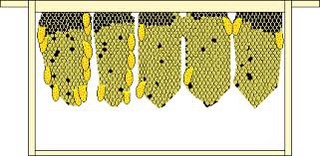 I took the frame of eggs and made large triangular cuts through the comb containing the cells with eggs.