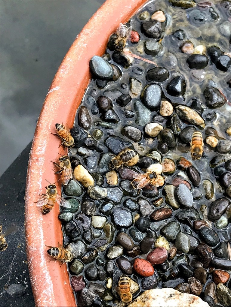 One of the reasons bees sometimes become aggressive is they don’t have a reliable supply of water. Always make sure there’s a water supply nearby but don’t put it too close to the hive as the bees won’t be able to describe the water’s location in a dance.