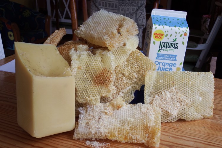 After many wasted hours over the last four years trying to get clean wax I finally watched Louise’s video (Processing Wax) and I’m really chuffed with my 1.3kg block ready for trading-in for foundation.